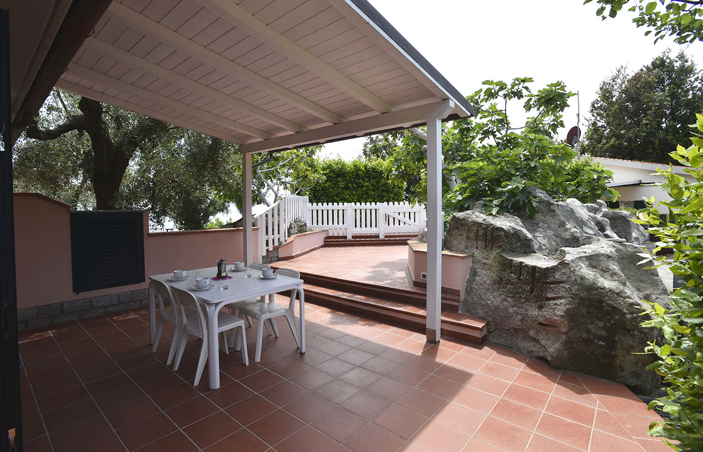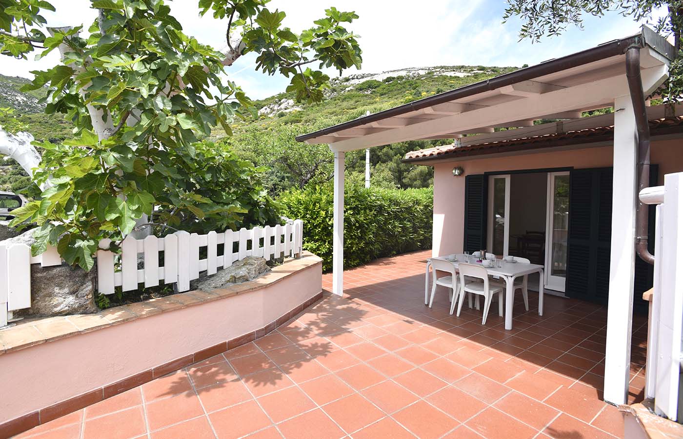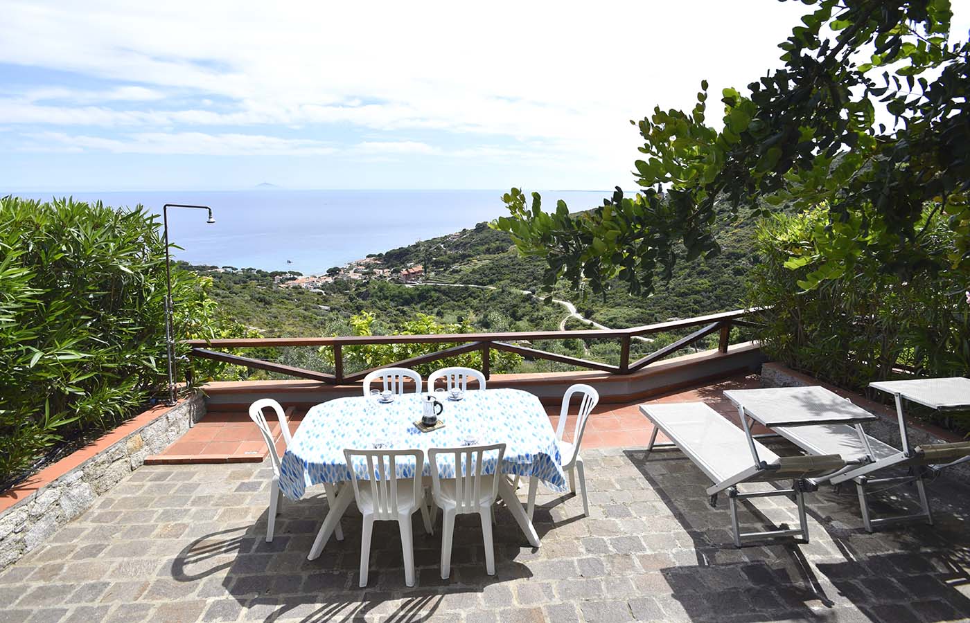 Villino Giglio: Il Villino Giglio, di recente costruzione è dotato di ingresso indipendente con giardino esterno e veranda privata attrezzata con tavolo e sedie, oltre ad una bella terrazza panoramica e attrezzata con lettini, ombrellone, sdraio, tavolo con sedie e barbecue. La terrazza si affaccia con un meraviglioso scorcio sul paese di Seccheto e sulle isole dell’Arcipelago Toscano.